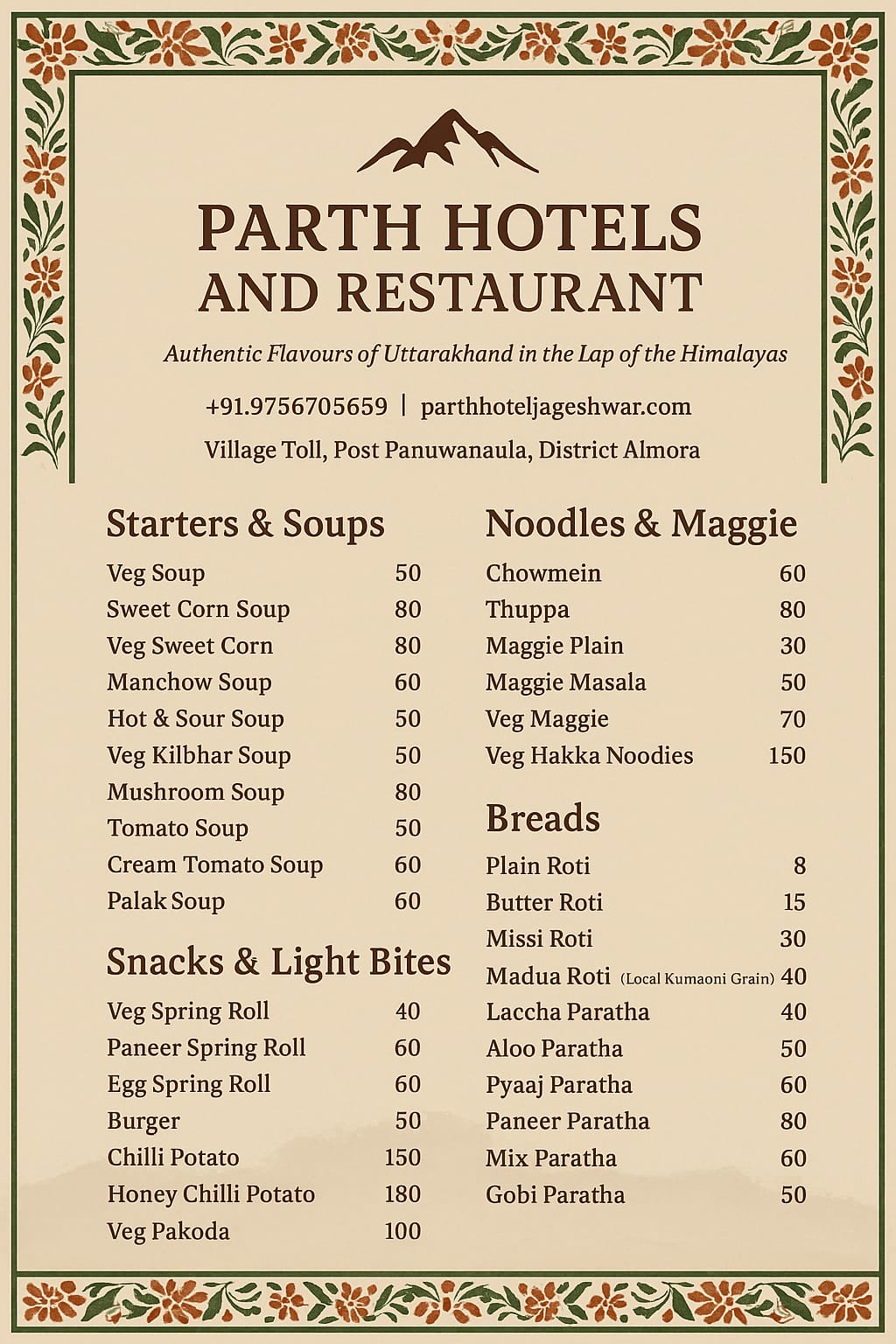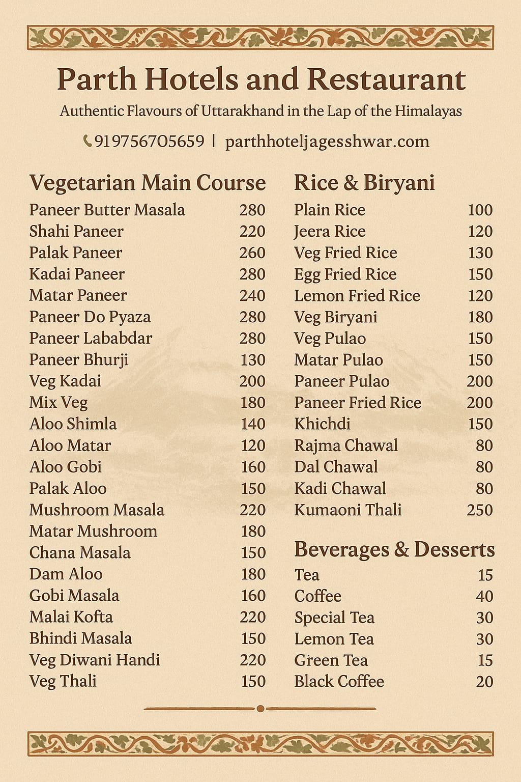 Breakfast, Lunch & Dinner from 6:00 AM to 10:00 PM
